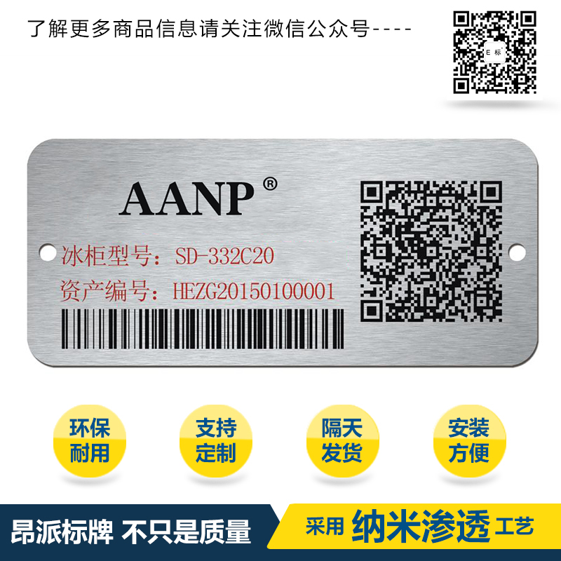 固定資產(chǎn)二維碼銘牌標牌 時間:2018-05-18 19:33:42 分類:金屬二維碼 瀏覽:次 金屬二維碼采取高科技印刷工藝以及質(zhì)量優(yōu)勢: 金屬二維碼---進口納米鋁板---高科技德國滲透印刷技術---耐摩擦,耐溶劑,耐高溫,抗摩擦,耐紫外線,耐化學品性,耐腐蝕性,滲透印刷技術做出來的金屬二維碼使用壽命長,不易掉色,金屬二維碼識別率快,掃描率高,并能光潔如新。 分享收藏: 上一個: 樹木二維碼牌銘牌標牌 下一個: 機器二維碼銘牌標牌 相關產(chǎn)品 托盤二維碼銘牌標牌 金屬貨架二維碼銘牌標牌 汽車二維碼銘牌標牌 設施二維碼銘牌標牌 機器二維碼銘牌標牌 石油二維碼銘牌標牌