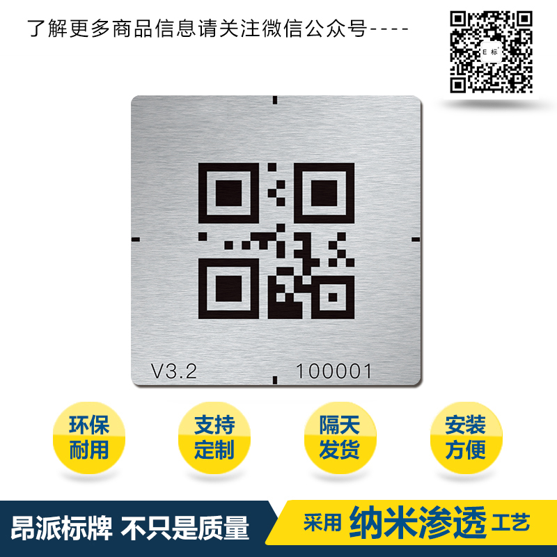 機(jī)器二維碼銘牌標(biāo)牌 時(shí)間:2018-09-07 14:41:30 分類:金屬二維碼 瀏覽:次 金屬二維碼采取高科技印刷工藝以及質(zhì)量?jī)?yōu)勢(shì): 金屬二維碼---進(jìn)口納米鋁板---高科技德國(guó)滲透印刷技術(shù)---耐摩擦,耐溶劑,耐高溫,抗摩擦,耐紫外線,耐化學(xué)品性,耐腐蝕性,滲透印刷技術(shù)做出來的金屬二維碼使用壽命長(zhǎng),不易掉色,金屬二維碼識(shí)別率快,掃描率高,并光潔如新。 分享收藏: 上一個(gè): 固定資產(chǎn)二維碼銘牌標(biāo)牌 下一個(gè): 汽車二維碼銘牌標(biāo)牌 相關(guān)產(chǎn)品 托盤二維碼銘牌標(biāo)牌 金屬貨架二維碼銘牌標(biāo)牌 汽車二維碼銘牌標(biāo)牌 設(shè)施二維碼銘牌標(biāo)牌 石油二維碼銘牌標(biāo)牌 固定資產(chǎn)二維碼銘牌標(biāo)牌