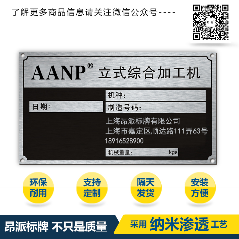 金屬鋁牌銘牌標牌 時間:2018-05-12 16:12:54 分類:金屬銘牌 瀏覽:次 標牌、銘牌、鋁牌用途以及特色,耐候性低、抗惡劣天氣,不受臭氧、空氣污染、酸雨侵襲;耐紫外線、抗紫外線、抗粉化;耐化學品性、抗酸堿侵蝕;耐腐蝕性,氧化潮氣鹽份滲透率低;防霉菌污損耐濕性優(yōu),并能保持光潔,易于保養(yǎng)清洗,不易變色、褪色、爆裂、粉化等! 分享收藏: 上一個: 機械參數牌銘牌標牌 下一個: 固定資產銘牌標牌 相關產品 特種設備陽極氧化鋁銘牌標牌 陽極氧化指示小銘牌標牌 自動化設備鋁銘牌標牌 設備信息陽極氧化銘牌標牌 汽車零配件鋁銘牌標牌 產線標識鋁銘牌標牌