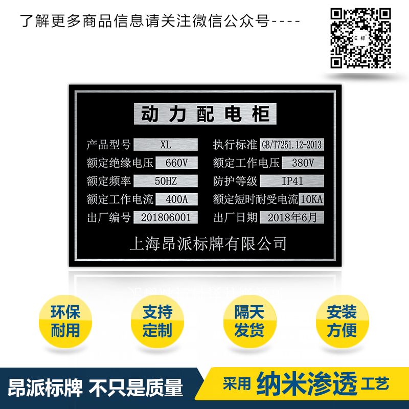 電柜銘牌標牌 時間:2018-09-07 15:36:39 分類:金屬銘牌 瀏覽:次 標牌、銘牌、鋁牌的品質: 本產品具有耐酸堿、耐熱震、耐高溫、抗沖擊、還具有很強的耐曬、耐磨擦、耐高溫、耐腐蝕、耐有機溶劑等特性,抗紫外線、抗粉化、不受臭氧、空氣污染、在室外陽光照射不易褪色,廣泛應用于化工、電力和電信等腐蝕性強或須把標志牌懸掛于室外的企業,歡迎新老客戶拿圖拿樣來定做.不分量大小都可以定做價格合理.質量保證交貨準時。 分享收藏: 上一個: 設備銘牌標牌 下一個: 銘牌標牌 相關產品