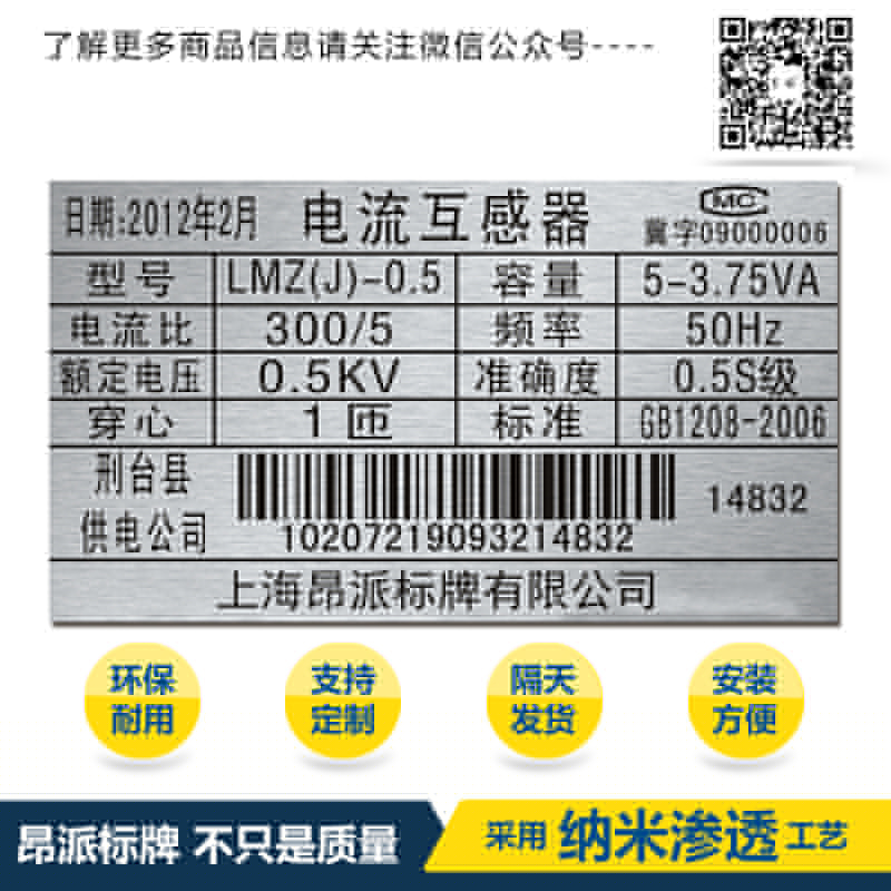 電網條碼銘牌標牌 時間:2018-05-21 16:06:08 分類:金屬條碼 瀏覽:次 關于金屬條碼獨特點-以及-質量優勢: 金屬二維碼---進口鋁板---高科技德國印刷技術---耐摩擦,耐溶劑,耐高溫,抗摩擦,耐紫外線,耐化學品性,耐腐蝕性,滲透印刷技術做出來的金屬二維碼使用壽命久不易掉色,金屬二維碼識別率快,掃描識別率高。 分享收藏: 上一個: 郵局運輸條碼銘牌標牌 下一個: 金屬條形碼牌銘牌標牌 相關產品 感應器鋁合金條形碼銘牌標牌 工程系統管理使用金屬條形碼銘牌標 物流管理鋁制條形碼銘牌標牌 倉庫管理鋁制條形碼銘牌標牌 流水號鋁制條形碼銘牌標牌 序列號鋁制條形碼銘牌標牌